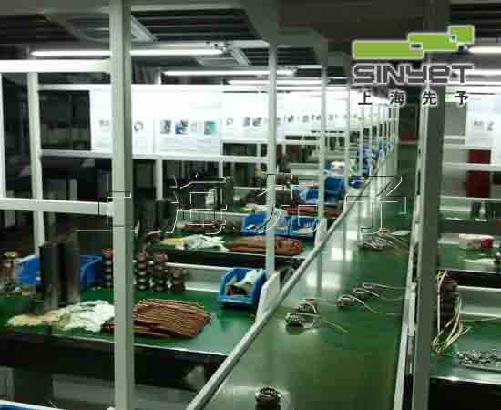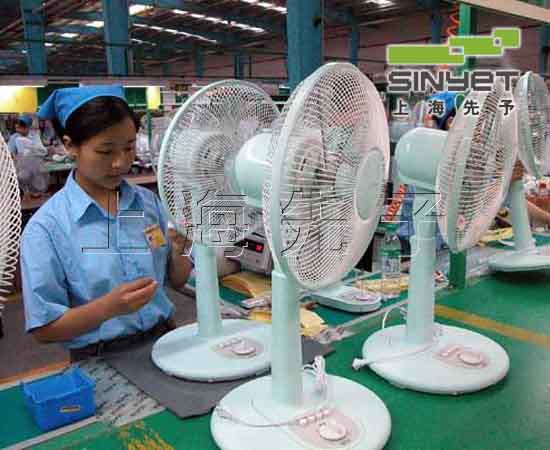 工艺电风扇装配线的结构: 1、线体长度根据产品的装配工艺编排计算得出; 2、线体高度为2M,其中工作面高度750±20mm可调; 3、线体宽度:150mm~1000mm根据产品规格自由定; 4、线体配置: 1)日光灯,2)电风扇,3)气管配有快换节口,4)工艺图板,5)工作桌配有220V电源插座,6)进口输送带,7)专用铝合金, 5、动力配置:国产电磁调速/变频调速控制。
